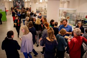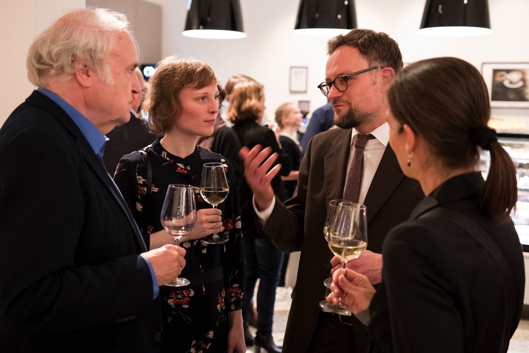 Schnell vertiefen sich die Gäste in angeregte Unterhaltungen. Ob stehend…