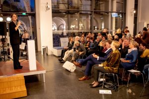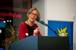 Die Hausherrin Prof. Dr. Anja Dauschek begrüßte mit kurzen aber herzlichen Worten das Kinderbuch interessierte Publikum.