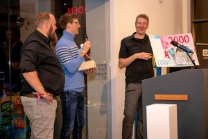 aber natürlich auch über das Preisgeld. Symbolisch überreicht durch einen 2000 Euro Schein, der von Maria Karipidou (Carl Buch Preisträgerin 2018) gestaltet wurde.