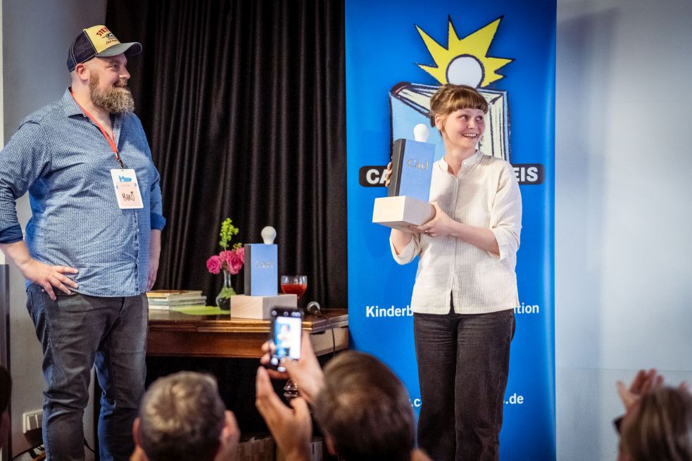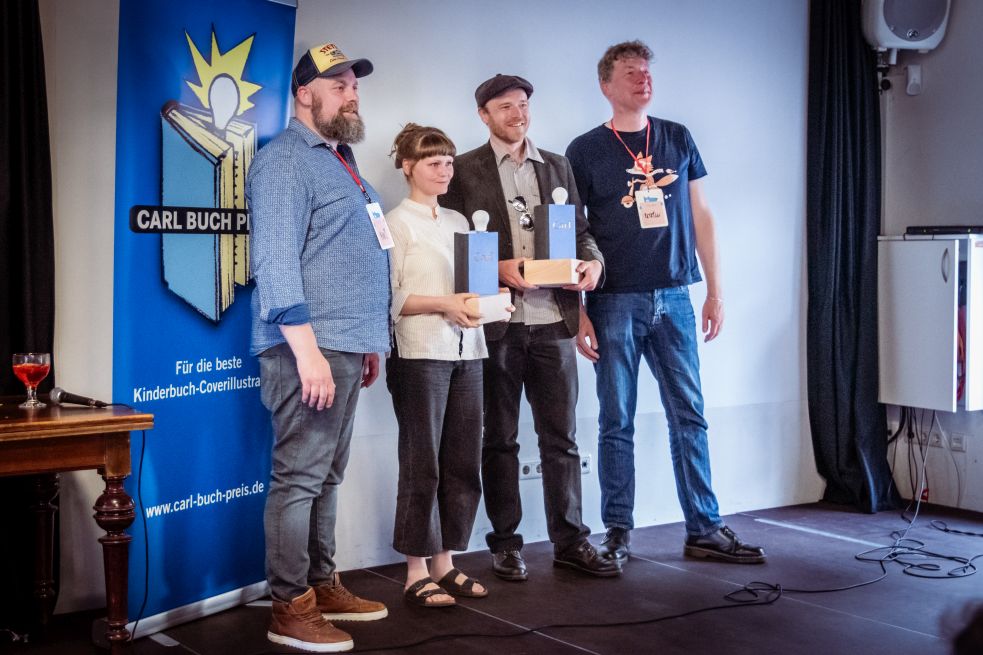 Am 23.05.2023 wurde erstmalig der Carl-Buch-Preis im Rahmen des Kongresses für Kinderbuch Illustration Bunte Hunte verliehen. Der Gewinner des Preises 2023 ist der Illustrator Torben Kuhlmann. Doch bevor dieser den Preis entgegen nehmen konnte, bekam erst einmal die Preisträgerin der Jahres 2021 Martina Liebig ihre Skulptur vom Stifter Mano Eckhoff überreicht. Wir gratulieren Torben Kuhlmann, der mit seinem meisterhaft in Aquarell gestalteten Cover für das Buch „Alva und das Rätsel der flüsternden Pflanzen“ weit über die Hälfte aller Stimmen der Kinderjury für sich gewinnen konnte.