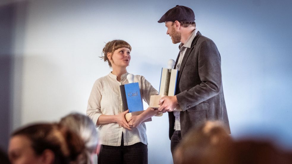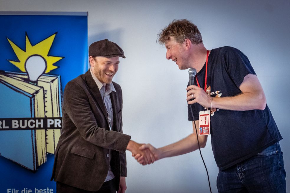 den Stifter des Carl Buch Preises Mano Eckhoff und den Initiator Patrick Wirbeleit auf die Bühne bat.